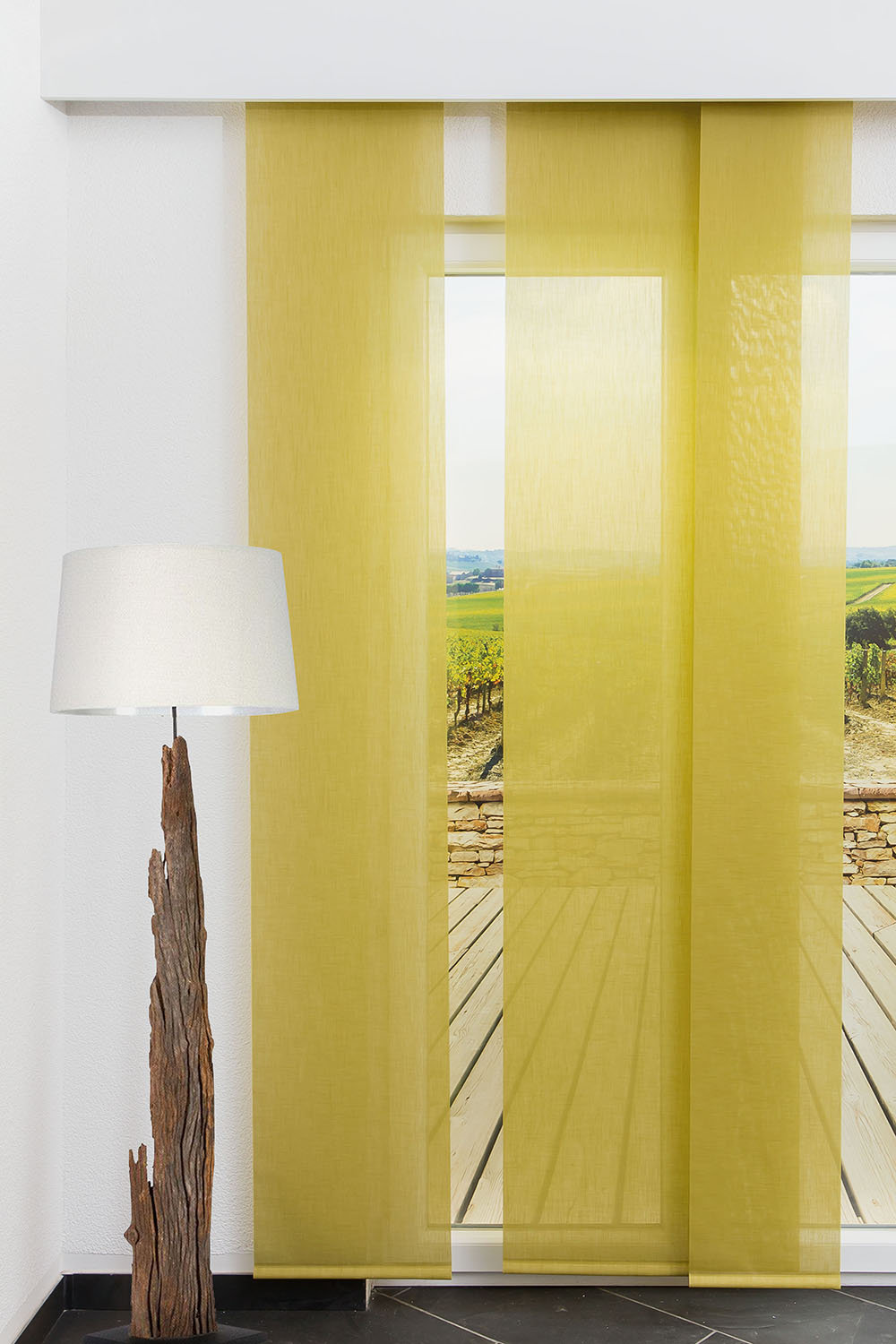 Die besonders hervorgehobene, an Leinen erinnernde Struktur dieses Flächenvorhangs ist ein echter Hingucker und lässt den Raum wohnlich und gemütlich wirken. Dieser transparente Flächenvorhang lässt viel Licht in den Raum, intensive Sonnenstrahlen erscheinen milder. Den besonderen Bedingungen in Feuchträumen wie Bad und Küche, hohe Wärme und Luftfeuchtigkeit, hält das Polyestergewebe mit Leichtigkeit stand. Dementsprechend lässt es sich auch feucht abwischen und schonend bei 30 Grad von Hand waschen. An Nordfenstern angebracht kann dieses Modell auch als Blendschutz für den Bildschirm dienen. Dieser warme, dunkle Gelbton erinnert an die goldene Herbstsonne, die den bunten Blätterwald erst richtig zum Leuchten bringt. Ein Flächenvorhang in Gelb harmoniert wunderbar mit frischem Weiß, rötlichem Holz und verwandten Gelbtönen. Petrol und blaustichige Grüntöne setzen die Deko außergewöhnlich in Szene, wirken wie Sonnenstrahlen auf dem Meer, und sorgen dadurch für ein atemberaubendes, fast magisches Flair.