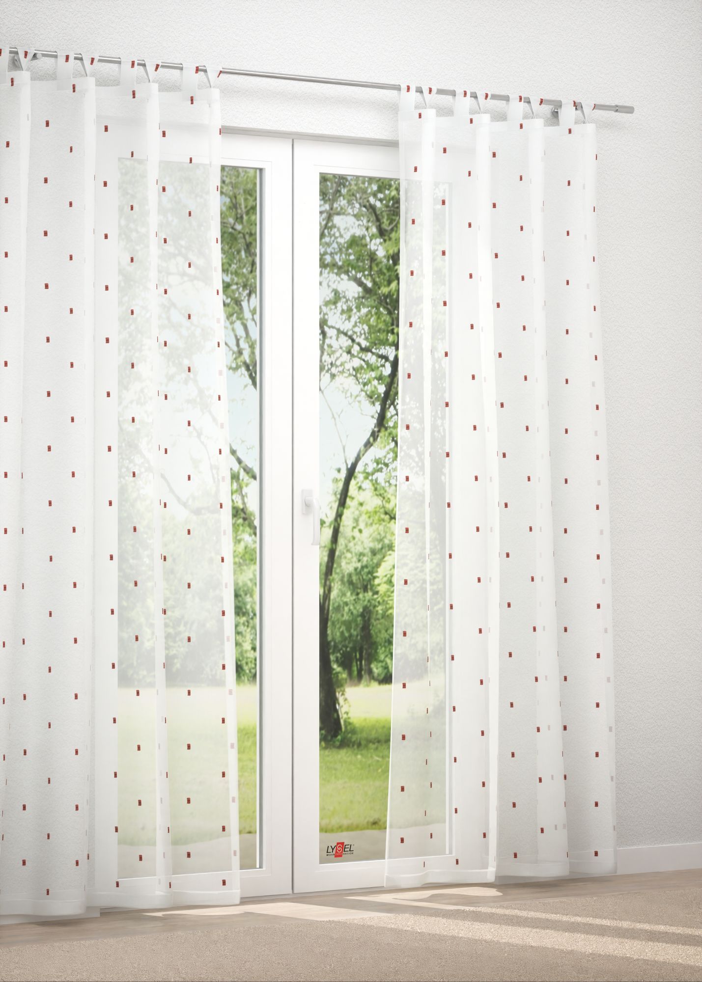 Mögen Sie es gern hell, offen und großzügig? Ihre kleinen Räume sollen einladender und freundlicher wirken? Dieser transparente Dekostoff kann Ihnen diese Wünsche erfüllen. Sein Muster erinnert an rechteckige Konfetti-Applikationen, die in regelmäßigem Abstand auf den weißen Untergrund aufgebracht sind. Ihr dezenter Schimmer wirkt angesichts der Transparenz des Polyesters bei einfallendem Sonnenlicht besonders effektvoll. Da dieser an den Seiten und am Abschluss gesäumt ist, lassen sich eine Menge Gestaltungsideen umsetzen. Das eingearbeitete Bleiband ist dabei von großem Vorteil. Um Ihre Lieblingsdeko zu reinigen, nutzen Sie am besten den Schonwaschgang der Maschine bei 30°C.