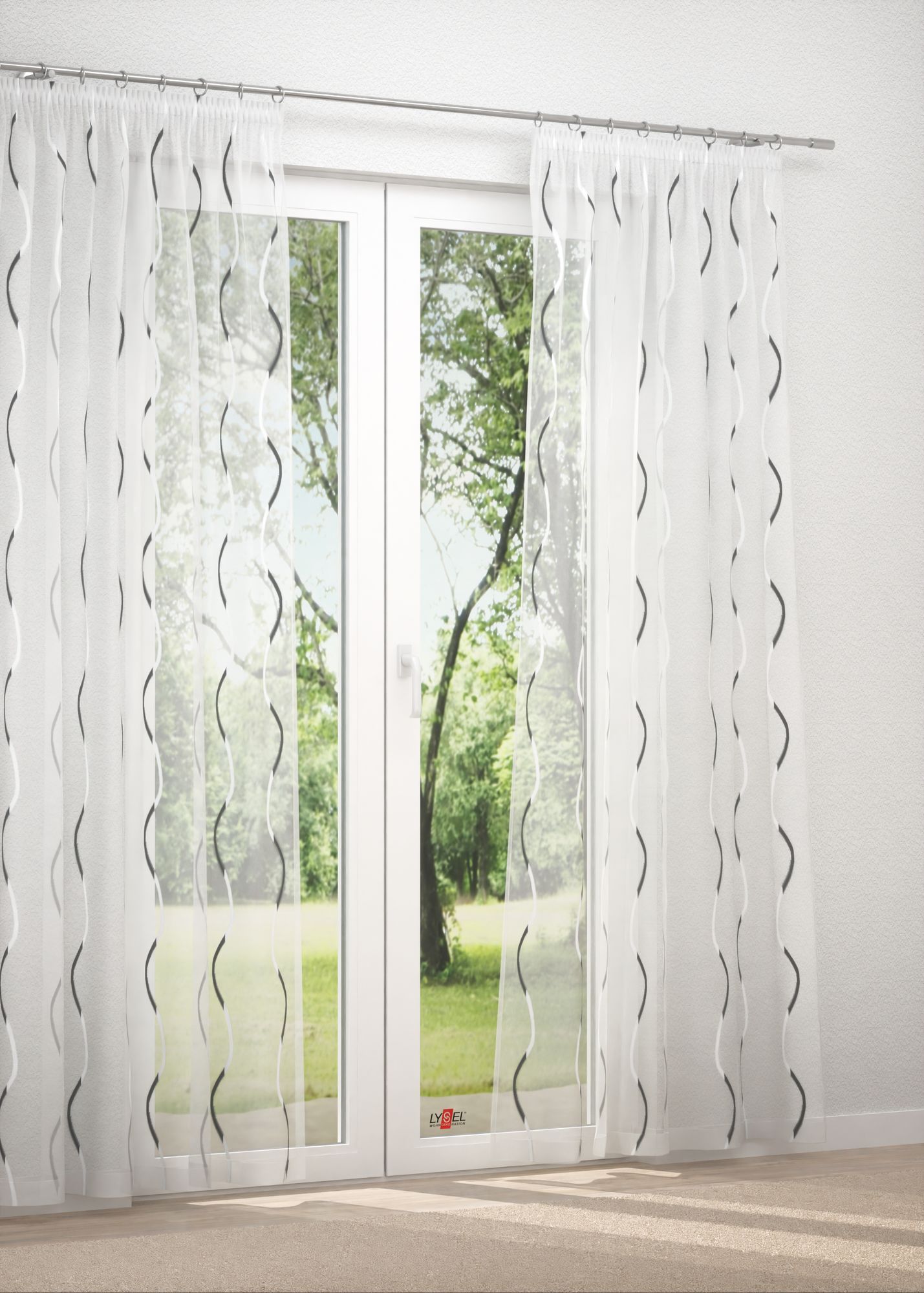 Mögen Sie es hell, freundlich und stilvoll, ist dieser Gardinenstoff genau das Richtige. Hingucker bei diesem Modell ist eine zweifarbige Wellenlinie, die sich sanft schimmernd vertikal durch die Stoffoberfläche zieht. Das moderne Muster in Scherli-Technik verbreitet ein vitales, ebenso elegantes Flair, das jedem Raum zu Gute kommt, egal, ob Sie den Behang als Scheibengardine in der Küche, Dekoschal im Schlafzimmer oder Raffrollo im Wohnzimmer einsetzen. Das eingearbeitete Bleiband sorgt überall für ein attraktives Erscheinungsbild. Durch die Transparenz des Polyesters bleiben Zimmer hell und freundlich, der Blick nach draußen stets gewahrt, sodass Sie sich ein Stück Natur und Freiheit in Ihre vier Wände holen können. Alles in allem ein Fensterschmuck mit dem gewissen Etwas, der pflegeleicht ist und bei 30°C schonend mit der Maschine gewaschen werden kann.