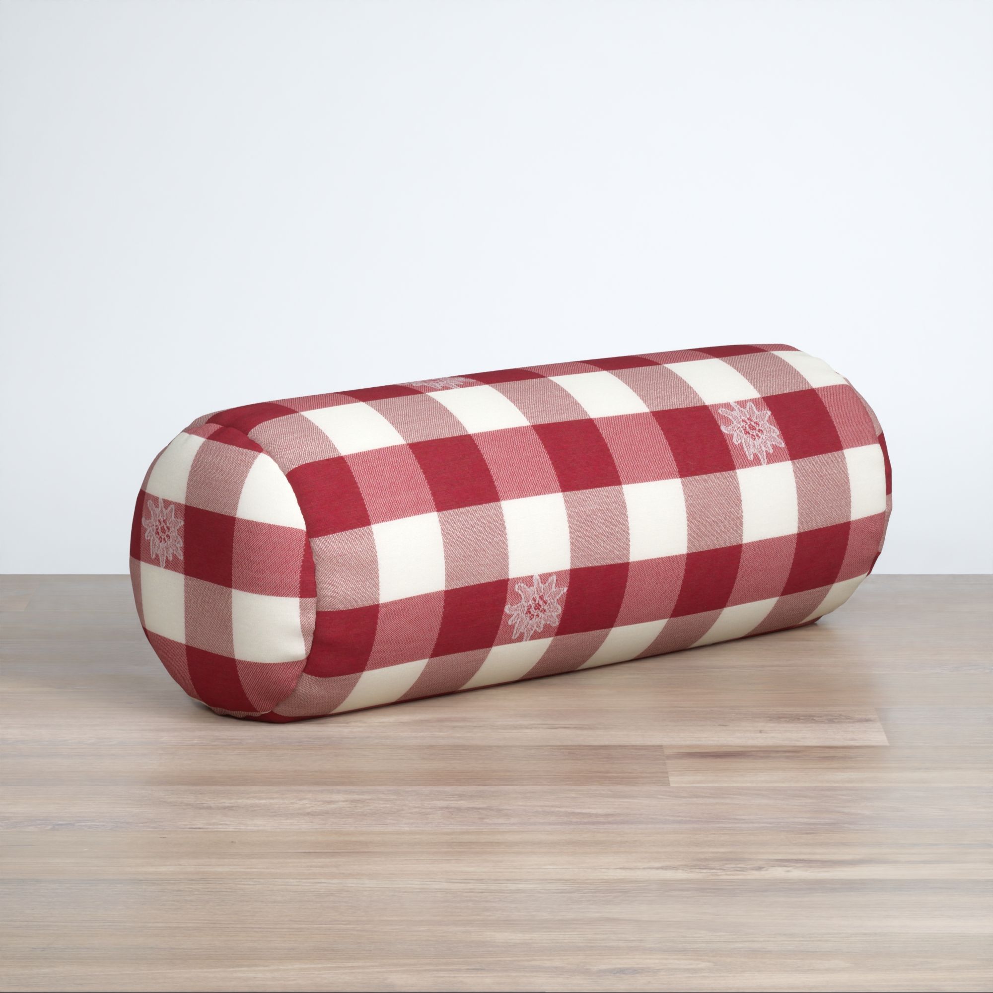 Dieser klassisch-karierte Dekostoff mit griffiger Haptik kann sich vor allem in gemütlich gestaltete Wohnumgebungen mit vielen Naturmaterialien passend einfügen. Das lichtdurchlässige Material besteht zu gleichen Teilen aus Polyester und Polyacryl und kann die Basis für die verschiedensten Heimtextilien sein, unter anderem lassen sich Kissenbezüge, Dekoschals und Raffrollos nach Maß daraus fertigen. Der karierte Stoff mit den gleich breiten horizontalen und waagerechten Streifen in Weiß und einer bunten Farbe ist vereinzelt mit feinen Edelweißblüten verziert, die den behaglichen und heimeligen Ausdruck des Designs noch unterstreichen.