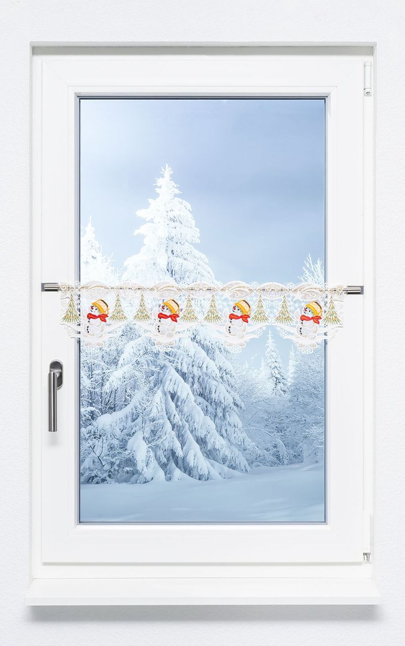 8,95 EURScheibengardine Plauener Spitze® - Schneemanngirlande #1W grün