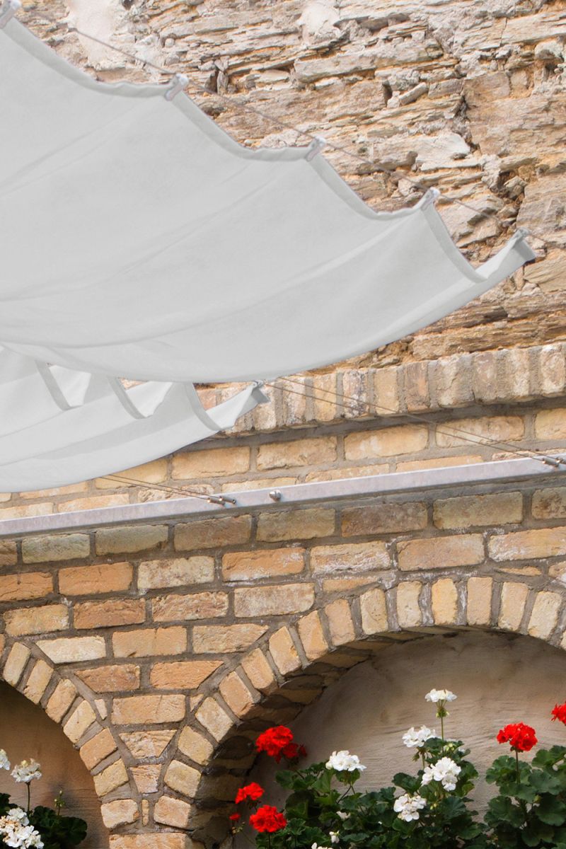 Mit seinen wasserabweisenden und fäulnishemmenden Eigenschaften eignet sich dieser lichtdurchlässige, halbtransparente Stoff optimal für die Beschattung im Außenbereich. Indem er blendende Sonnenstrahlen leicht abtönt, sorgt er für angenehme Lichtverhältnisse. Dieses unifarbene Segel erinnert an natürliches Baumwollgewebe, die weiche und glatte Oberfläche lässt es leicht und schwerelos wirken. Der mit gesäumten Seiten versehene Stoff wird mit den für Seilspannsonnensegel typischen Laufhaken befestigt und ist außerdem bei 30°C in der Maschine waschbar. Die Laufhaken müssen separat bestellt werden, denn diese sind nicht im Lieferumfang enthalten. Achten Sie bitte darauf, dass die bestellten Maße reine Stoffmaße sind. Nach Befestigung der Laufhaken erweitert sich die Breite um 2cm und dadurch entstehen unvermeidbare Lichtschlitze.